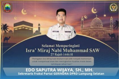 Sekretaris Fraksi partai Gerindra Lampung Selatan, Edo Saputra Wijaya: Isra’ Mi’raj Momentum Perkuat Iman, Takwa, dan Integritas Pelayan Publik