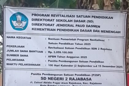 LampungID.Com,Bandar Lampung Bantuan pemerintah program Revitalisasi satuan pendidikan SDN 2 Rajabasa, diduga…
