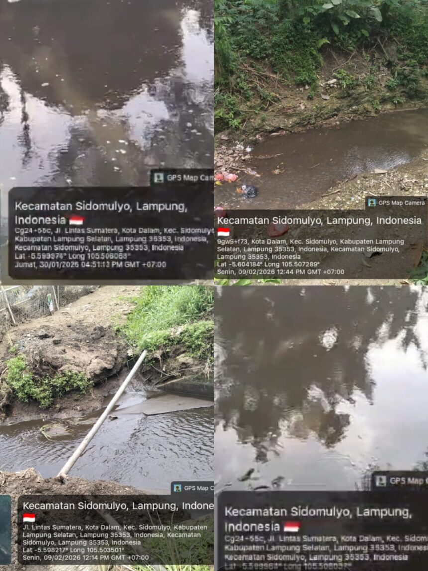 LAMPUNGID.Com,lampung selatan – Dugaan pencemaran lingkungan yang diduga bersumber dari aktivitas usaha penggemukan sapi milik PT Juang Jaya Abadi, yang berlokasi di Jalan Lintas Sumatera, Kecamatan Sidomulyo, Kabupaten Lampung Selatan, kembali menjadi perhatian masyarakat. Sejumlah warga mengeluhkan munculnya aroma tidak sedap, perubahan kondisi air sungai, serta dampak lingkungan yang dirasakan di sekitar area perusahaan.