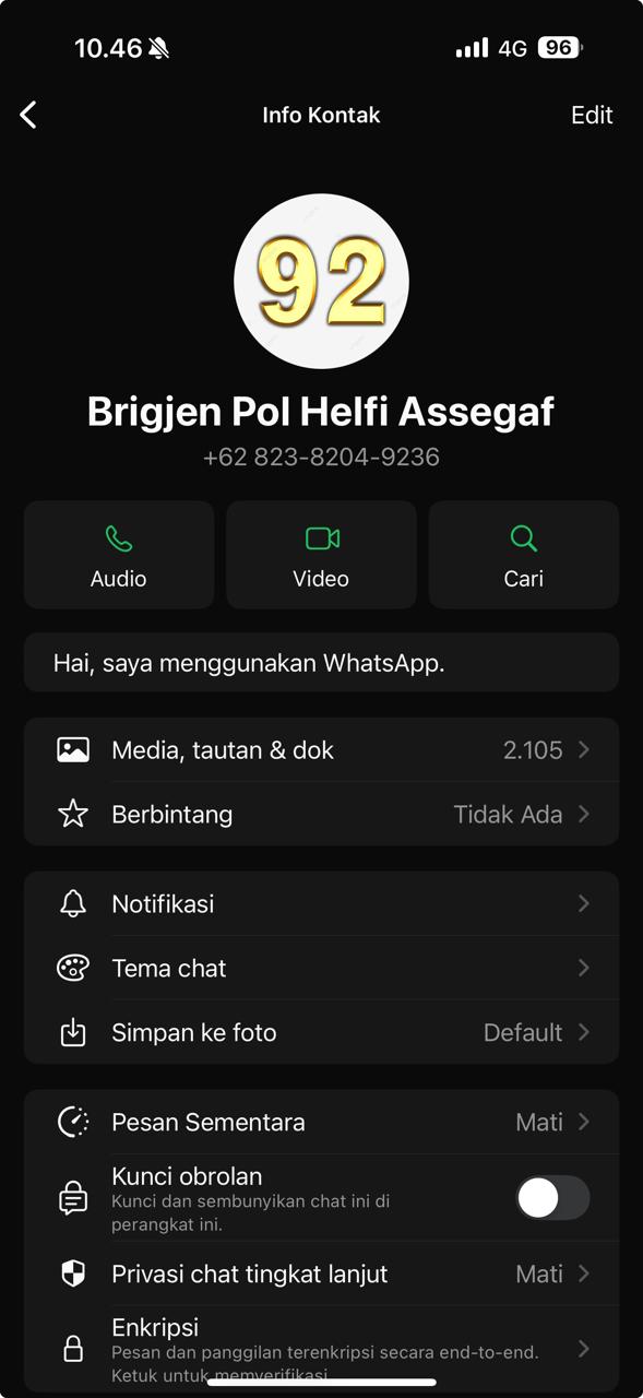 Nomor +62 823-8204-9236 yang beredar dan digunakan oleh oknum tertentu bukan nomor Kapolda Lampung.
