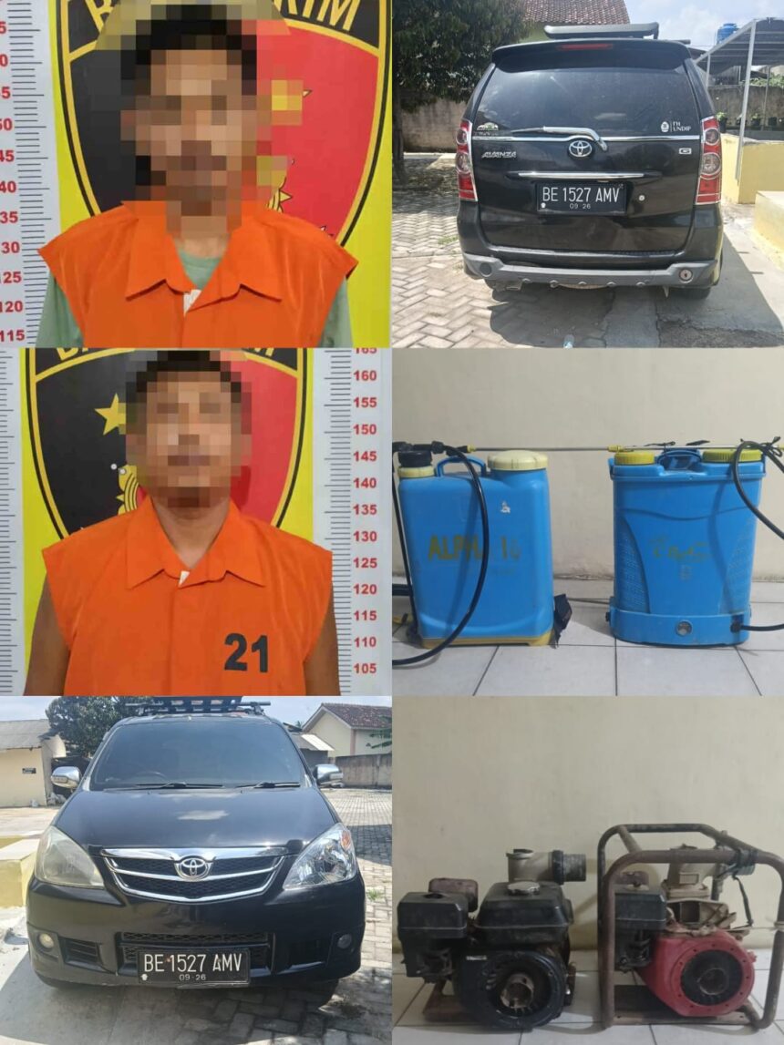 LAMPUNG SELATAN, – Pelaku kasus pencurian dengan pemberatan yang menyasar peralatan pertanian milik warga di Kecamatan Tanjung Bintang, Kabupaten Lampung Selatan, berhasil diamankan aparat kepolisian.
