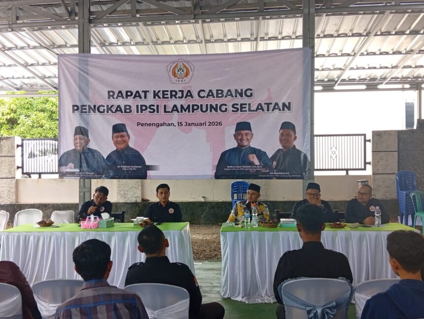 LAMPUNG INDONESIA.Com,Penengahan, 15 Januari 2026 Rapat Kerja Cabang (Rakercab) Lengkap Ikatan Pencak Silat Indonesia (IPSI) Kabupaten Lampung Selatan dilaksanakan di Sekretariat Kantor IPSI, Kecamatan Penengahan, Kabupaten Lampung Selatan. Kegiatan ini berlangsung dengan penuh antusiasme, tercermin dari pelaksanaan Musyawarah Latihan (Muslatan) yang mencatat jumlah peserta terbanyak dan tingkat partisipasi yang tinggi.
