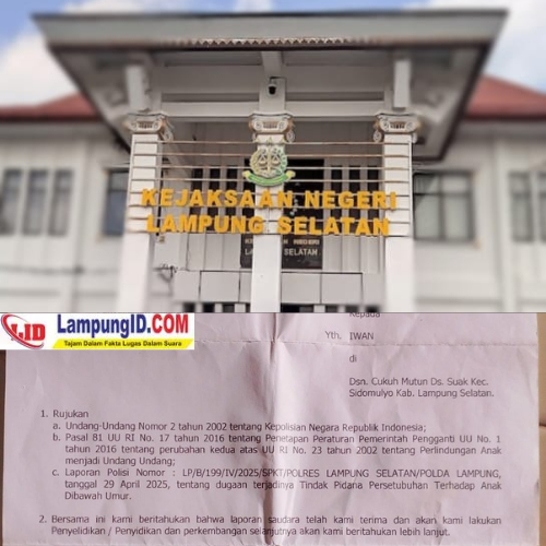 LAMPUNG INDONESIA.Com,Lampung Selatan Penanganan kasus dugaan persetubuhan terhadap anak di bawah umur sebagaimana tercatat dalam Laporan Polisi Nomor LP/B/199/IV/2025/SPKT/Polres Lampung Selatan/Polda Lampung tanggal 29 April 2025, kembali menuai sorotan.