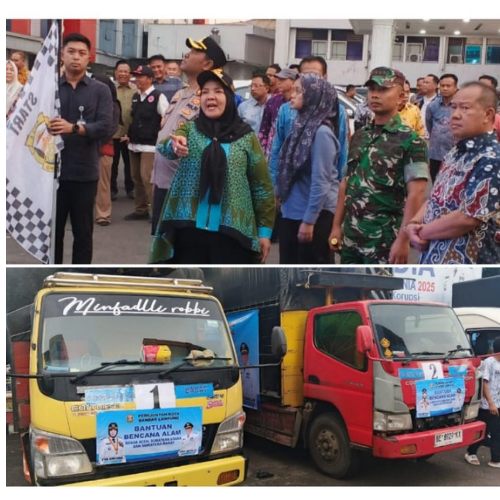 LAMPUNG INDONESIA.Com, BANDAR LAMPUNG Pemerintah Kota Bandar Lampung resmi melepas penyaluran donasi bantuan kemanusiaan untuk korban bencana banjir yang melanda Provinsi Aceh, Sumatera Utara, dan Sumatera Barat. Prosesi pelepasan bantuan dipimpin langsung oleh Walikota Bandar Lampung, Hj. Eva Dwiana, bertempat di halaman parkir Pemerintah Kota Bandar Lampung, Sabtu sore (06/12/2025).Dalam sambutannya, Walikota Hj. Eva Dwiana menyampaikan bahwa dukungan masyarakat Bandar Lampung merupakan wujud solidaritas dan empati terhadap warga terdampak bencana yang sedang menghadapi masa sulit.